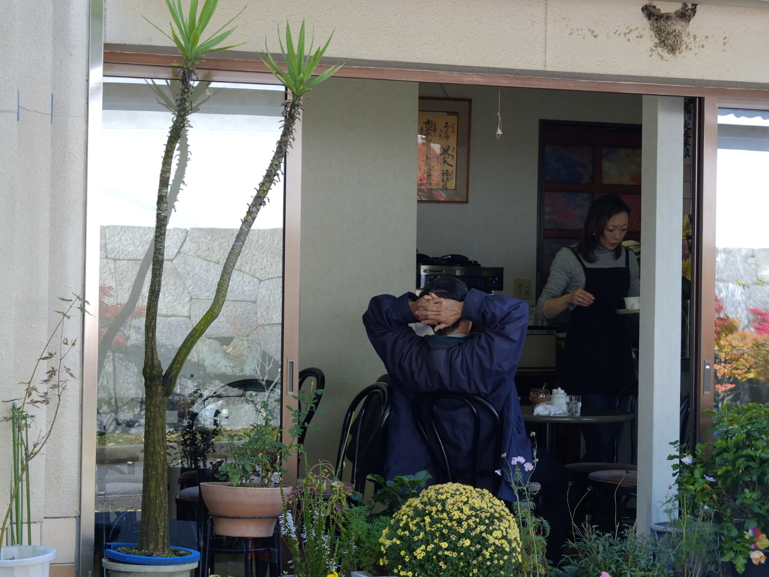 Les feuilles sont tombées, le froid s’installe. Tu sais que bientôt tu vas devoir repartir. Tu ne sens pas grand chose, comme anesthésié, comme si rien ne pouvait t’atteindre. Tu attends le moment du départ. Tu ralentis un peu la marche solitaire, tu te surprends même à participer au monde, à celui des autres, visites, fêtes, amitiés, saké. Tu souris figé mais tu souris. Tu fais semblant, comme il faut, on ne dirait pas que ton esprit est ailleurs. Ton corps joue bien le jeu, il se rapproche quand il faut, embrasse comme il faut, chante quand il faut. Tu traverses tout ça, un peu éberlué, tous ces « derniers moments » qui se suivent, implacables et de plus en plus rapides.