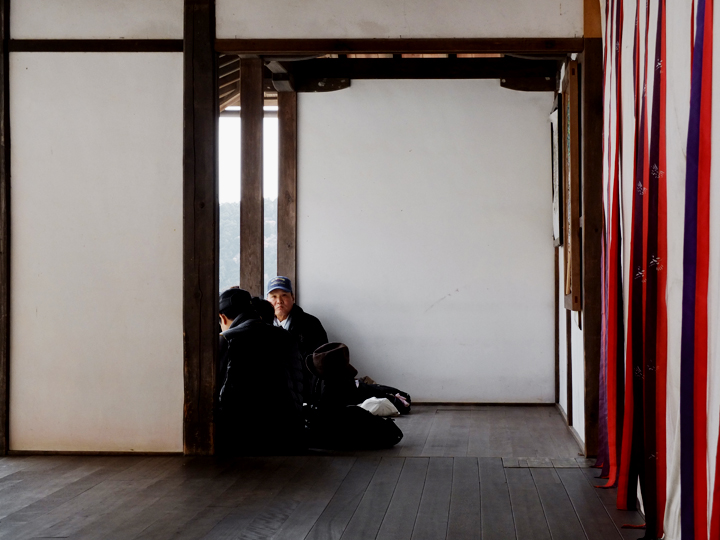 L’isolé regarde un point, au loin, il tourne le dos au temple principal et regarde par dessus les murs, là où il n’y a rien à regarder. En tout cas, toi, tu ne vois rien, juste lui, et cette attitude de celui qui voit.