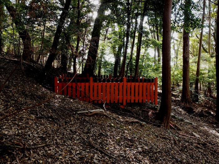 La nuit, une longue enfilade de portes rouges t’emmène sur une route que tu ne contrôles pas. Tu montes et descends à l’intérieur de ce boyau protecteur. Tu avances, tu ne sais pas si tu retrouveras ton chemin, et tu écoutes, aux aguets, totalement hors du temps, de l’espace. Les bruits de la forêt qui entoure sont les signes de la présence, tu en es sûr, des dieux et des démons qui t’observent sans pouvoir t’atteindre.